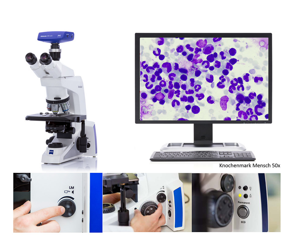 - Objektive: N-Achroplan 2,5x, 5x, 10x, 40x, 100x Öl