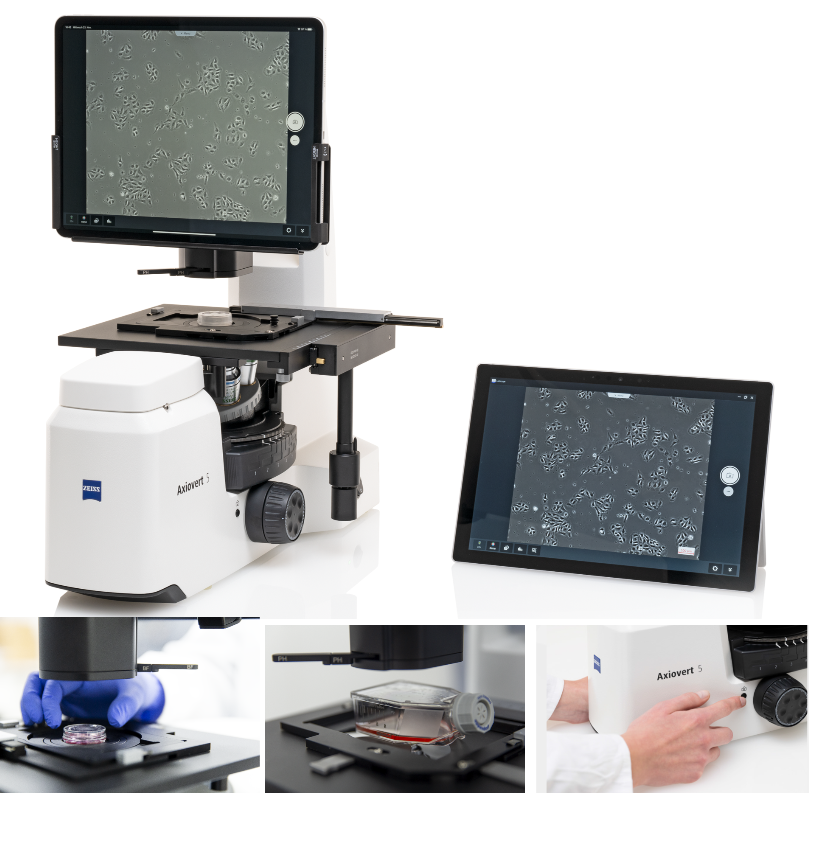 Mit Axiovert 5 digital holen Sie sich KI in Ihr Zelllabor und erleichtern sich so die tägliche Arbeit. Mit diesem Mikroskop werden Ihre Prozesse effizienter und Ihre Ergebnisse lassen sich besser reproduzieren. Optimieren Sie den täglichen Workflow. Zellzählung und Zellkonfluenz übernehmen ganz automatisiert die einfach bedienbaren KI-Module. Mit Axiovert 5 digital schöpfen Sie die Vorteile eines All-in-One-Mikroskopsystems voll aus. Von wissenschaftlichen Routineaufgaben bis hin zur Grundlagenforschung, schalten Sie einfach das System ein und beginnen Sie mit der Arbeit.Das Axiovert 5 digital eignet sich ideal für Mehrbenutzerumgebungen, da die korrekte Handhabung bereits konzeptionell mitgedacht wurde. So ist dieses All-in-One-Imaging-System darauf angelegt, intuitiv bedient werden zu können. Bilder werden einfach per Knopfdruck aufgenommen: