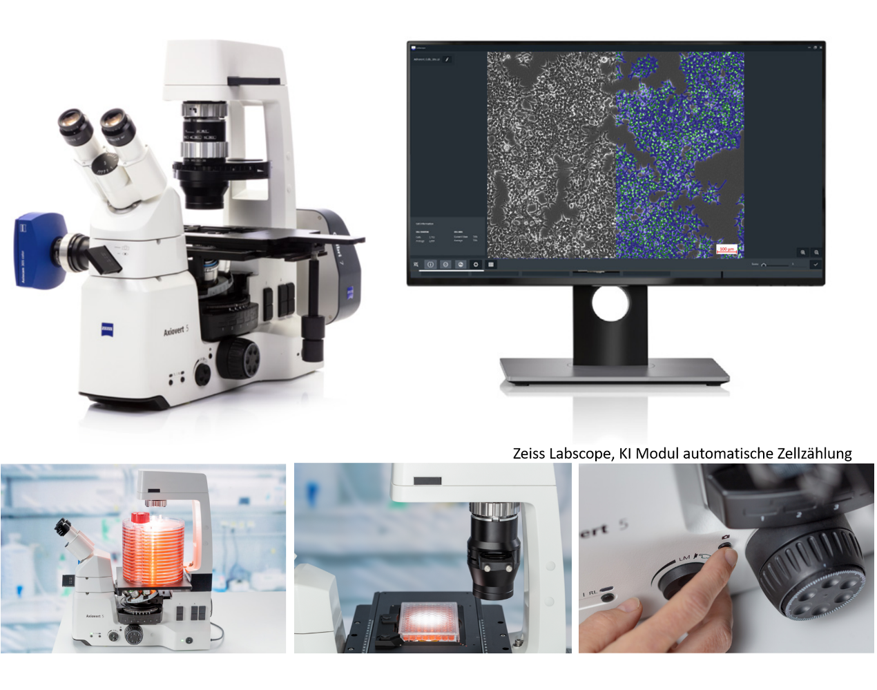 - Software: Labscope inklusive der Module: AI Cell Confluency, AI Cell Counting, Fast Panorama
